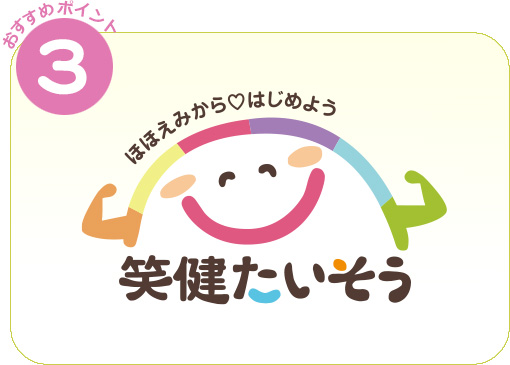 笑健体操とは、認知症予防ゲーム・笑い・呼吸・運動を組み合わせた手軽な体操です。免疫力の向上・認知症予防が期待できます。